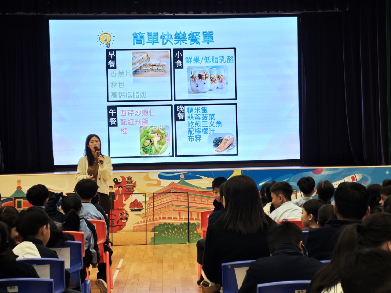 為了讓學生認識飲食對心靈的影響,本校於15日舉辦「健康心靈 快樂飲食學生健康講座,由註冊營養師教授學生分析營養素對身心的影響推介有助紓緩壓力的飲食方法,並指導學生如何搭配快樂餐單,吃得健康,以建立健康飲食的習慣。