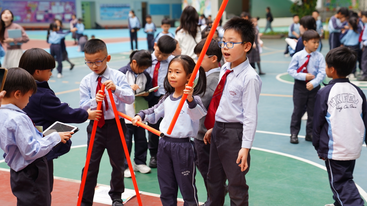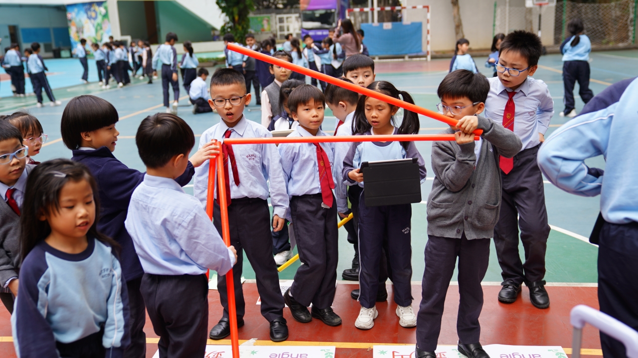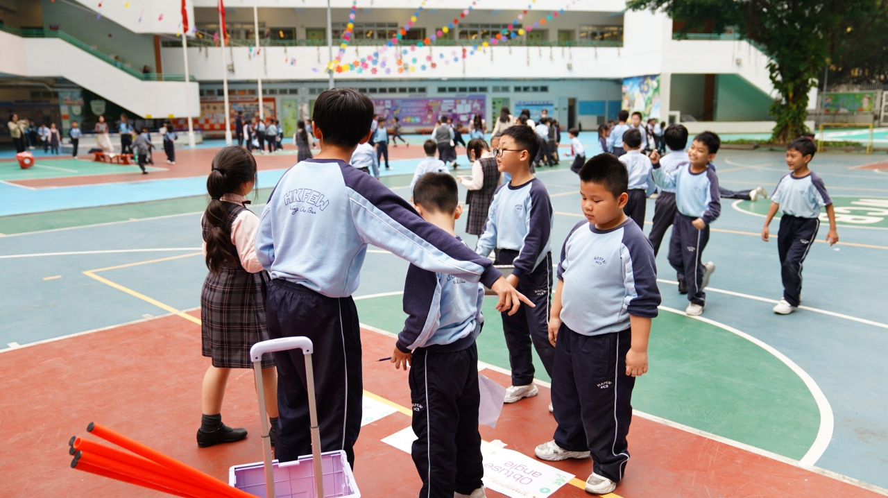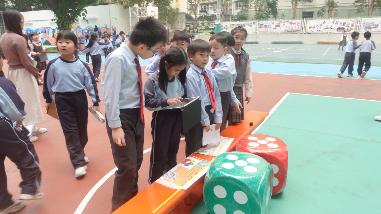 為推動學生從生活中學習數學,培養探索與解難能力,本校舉辦「數學全方位」互動學習活動。學生以小組形式,攜帶iPad前往校園各指定地點掃描二維碼,系統會隨機出現包括方向與空間題、加減法應用題及乘除法挑戰題等數學任務,完成任務並累積最高積分的小組可獲獎勵。此活動結合科技、運動與數學應用,讓學生走出課室,在實踐中提升運算能力、空間觀察力及團隊協作精神,體驗寓學習於探索的樂趣。