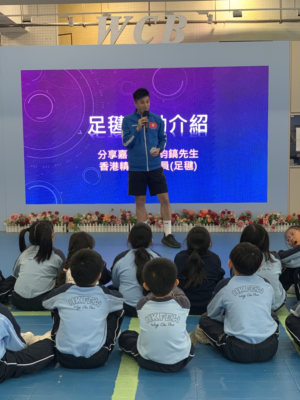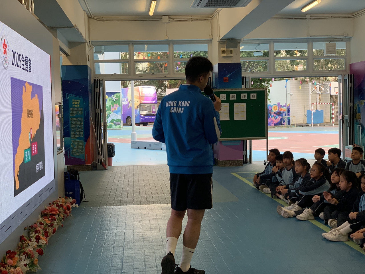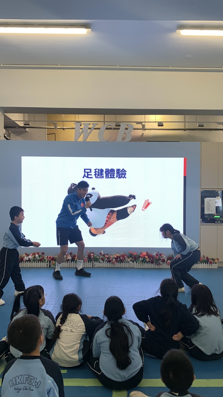 為迎接2025全運會,中國香港體育協會暨奧林匹克委員會的奧林匹克主義教育計劃,當日邀請了中國香港足毽運動員柯鈞鎬(甲蟲哥哥)到校分享他的運動員生涯及奧林匹克精神,他在八月期間參與了第十五屆全國運動會群眾賽事活動毽球項目中足毽的混合雙人賽項目。結果,他與隊友獲得銅牌。