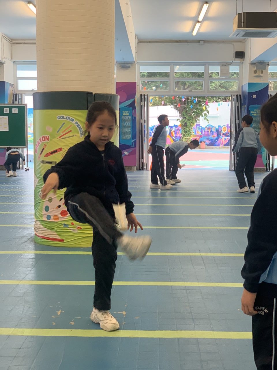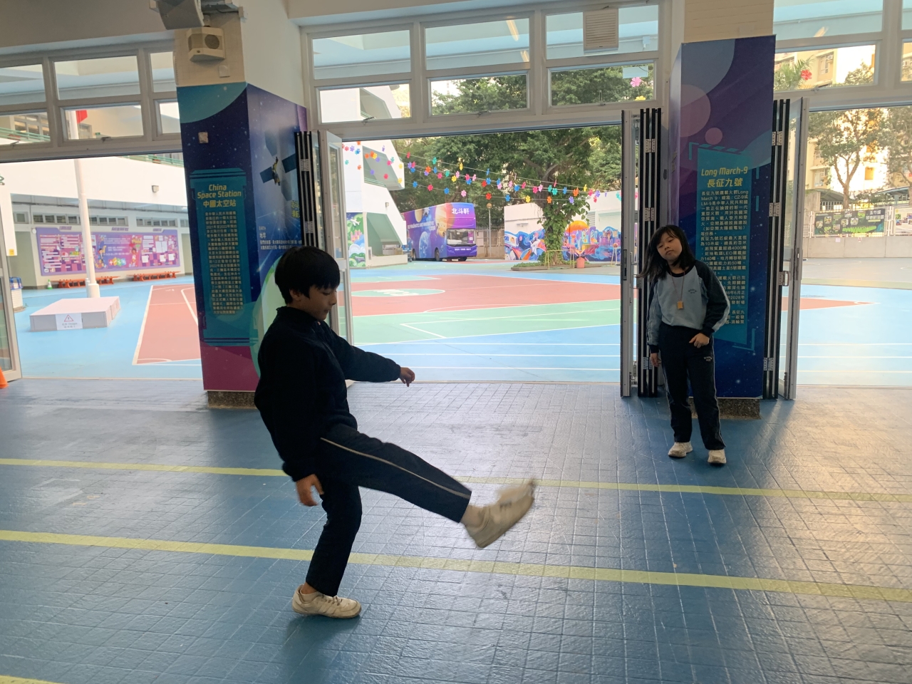 最後,甲蟲哥哥還教授同學們的基本踢毽技巧,除了增加同學們對踢足毽的興趣之外,還提升他們踢足毽的技巧。