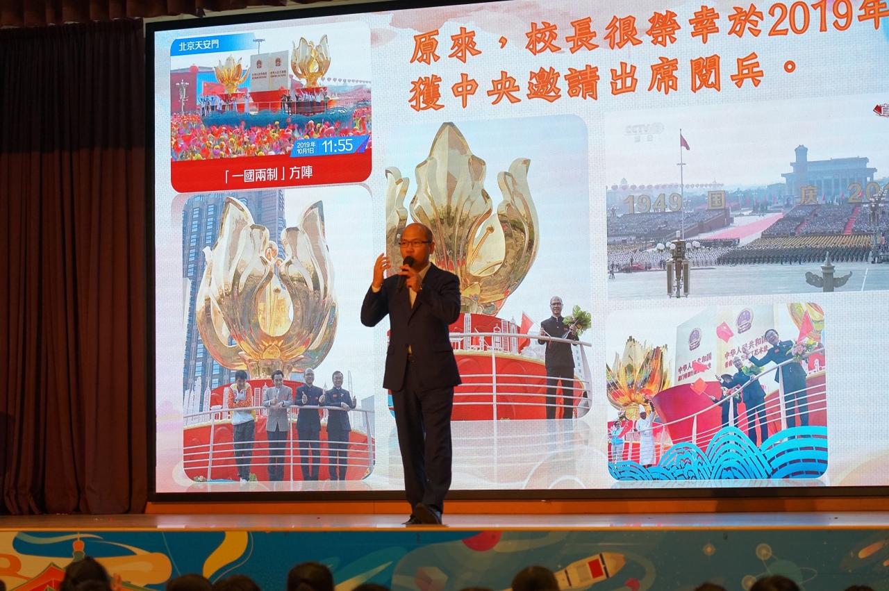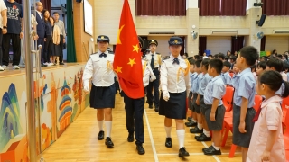 為慶祝祖國76周年華誕及提升學生的國家觀念與國民身份認同,本校於9月30日舉行了「國慶升旗禮」。活動在莊嚴的升旗儀式中拉開序幕。黃校長隨即發表了「國旗下的講話」,不僅加深了同學們對國慶由來、國家歷史及飛速發展成果的認識,更分享了其親身參與閱兵的經歷,演說振奮人心。校長勉勵各位作為未來主人翁的同學,要做好本份,努力學習,關心社會並培養良好的品德素質,以期將來能為祖國及香港的繁榮穩定作出貢獻。