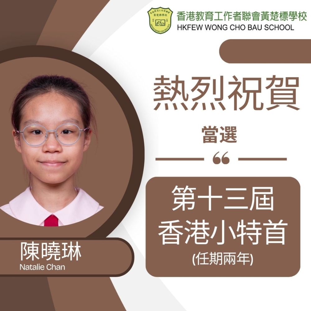 熱烈祝賀6A班陳曉琳當選「第十三屆香港小特首」(任期兩年)