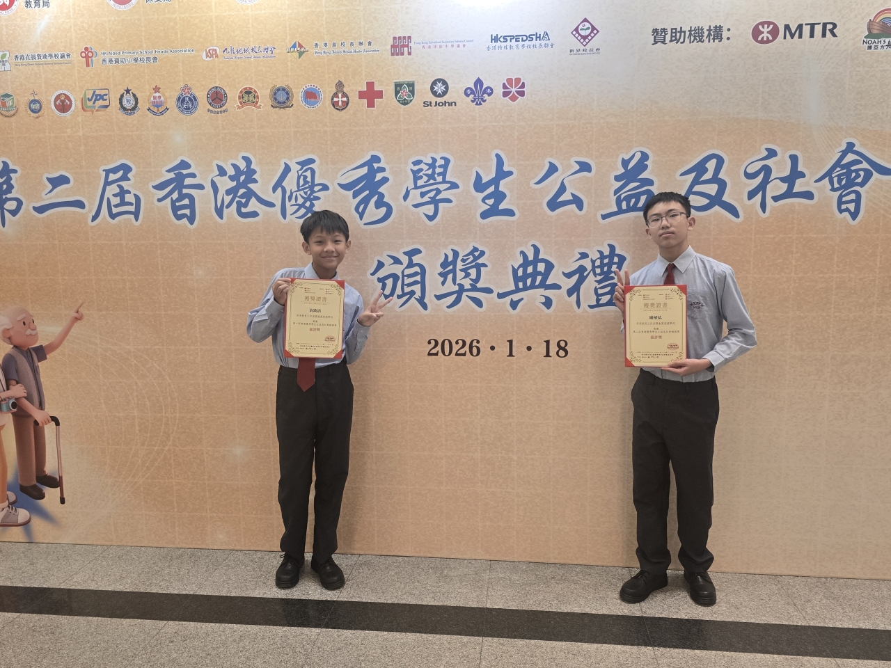 祝賀嚴楨弘與黃致滔同學,憑藉在公益服務領域的卓越付出與貢獻,榮獲第二屆「香港優秀學生公益及社會服務嘉許獎」!
