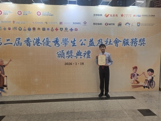 兩位同學不僅在學業上勤奮向上,更將熱誠與時間無私投入在社會服務上。身為學校升旗隊的隊長與旗手,他們每週都在莊嚴的儀式中負起升國旗的重任,那份對責任的堅守、對集體的榮譽感,早已內化為品格的一部分。正是這份使命感,驅使他們將同樣的熱忱與紀律,延伸至社區服務之中,以實際行動關懷社會,展現了香港青年知行一、心繫家國 的寶貴精神。